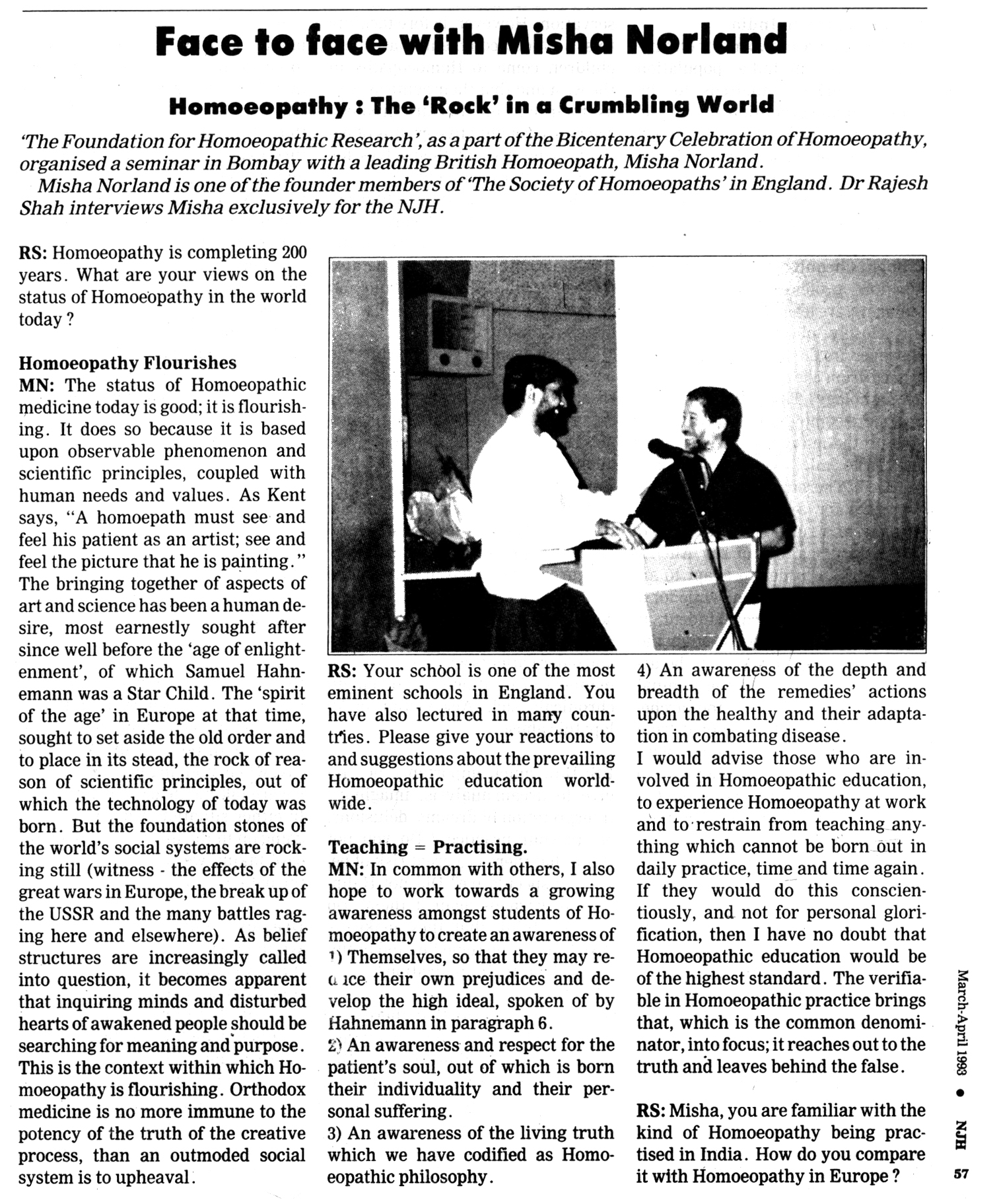 'The Foundation for Homoeopathic Research', as a part of the Bicentenary Celebration of Homoeopathy, organised a seminar in Bombay with a leading British Homoeopath, Misha Norland.